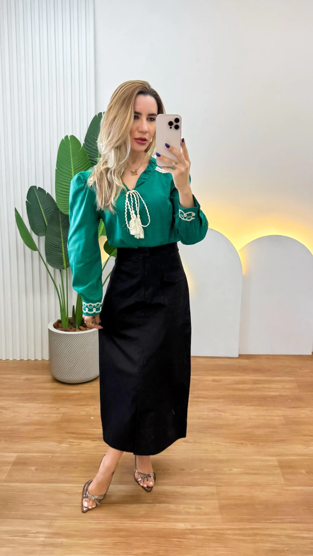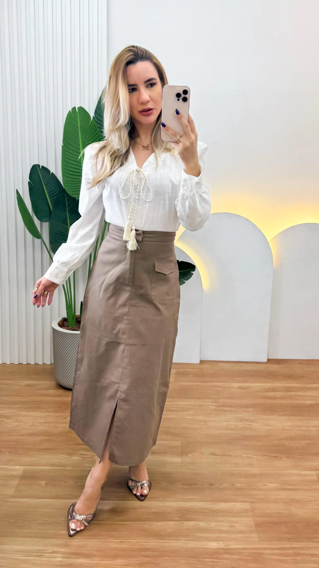 • Zíper e abotoação invisível na frente